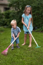 WOODY børneriven er en fremragende hjælper til de første skridt ind i havens verden. Det ergonomiske træskaft ligger godt i hånden, og metalhovedet sikrer lang holdbarhed selv ved hyppig brug. Ideel til at rive blade, jævne jord eller hjælpe forældre i bedet.