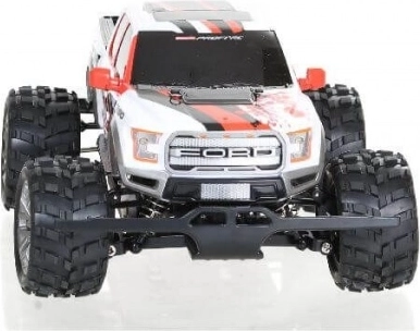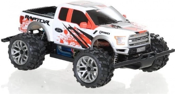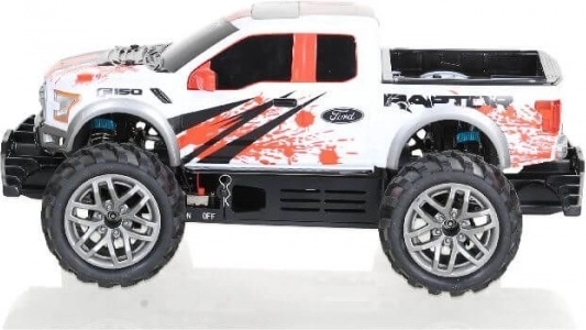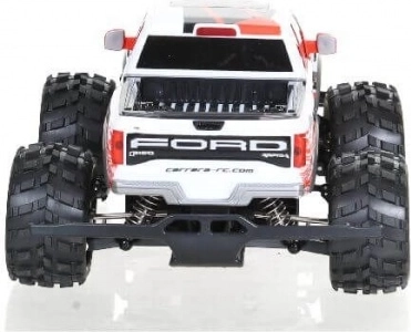RC‑bilen Carrera PROFI FORD F‑150 RAPTOR i skala 1:18 er designet til fart, holdbarhed og præcis håndtering. Den digitalt proportionale styring sikrer jævn gasrespons og følsomme sving, mens 4WD, oliedæmpere og høj frihøjde giver stabilitet og trækkraft på forskellige underlag. Funktionelle for- og baglygter øger desuden køreoplevelsen.