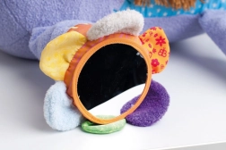Plysdyrret indeholder spejl-elementer og bløde accessories, som understøtter interaktiv leg og udvikling af selvindsigt.