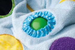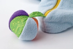Legetøjet er lavet af kvalitetsmaterialer og designet til at stimulere børns sanseindtryk gennem forskellige teksturer og farver.