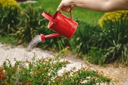 Rosen for enden af tuden spreder vandet som en fin regn, der beskytter blomster og blade og forhindrer udvaskning af substratet.