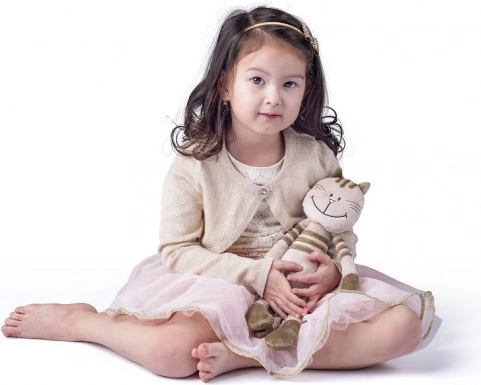 Denne bløde plyskat i en behagelig beige farve med brune striber glæder børn med sit venlige udtryk og lange lemmer, der er skønne at kramme. Takket være den lette konstruktion ligger den godt i selv de mindste hænder og bliver en favorit ved både sengetid og leg.