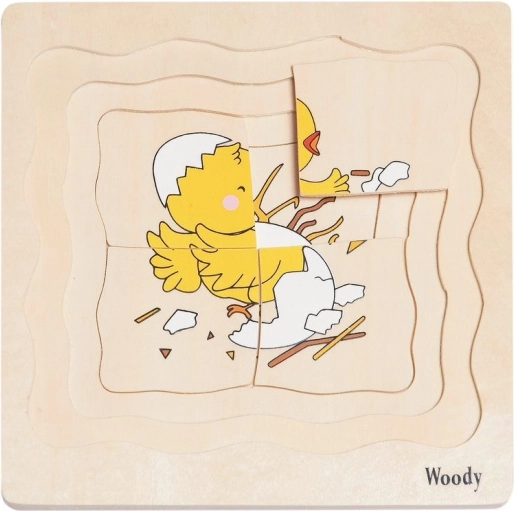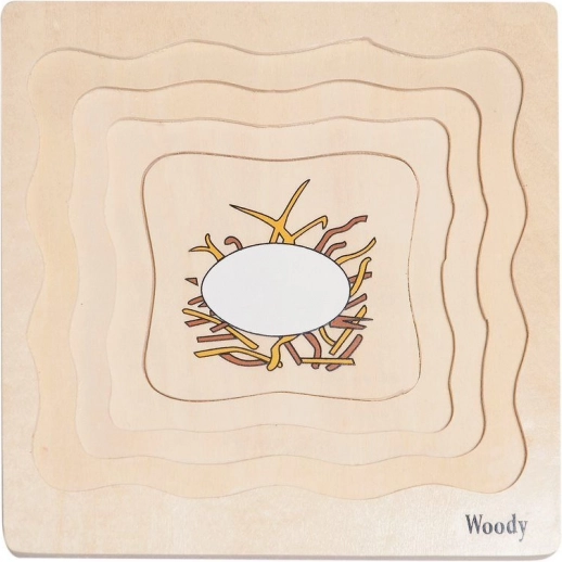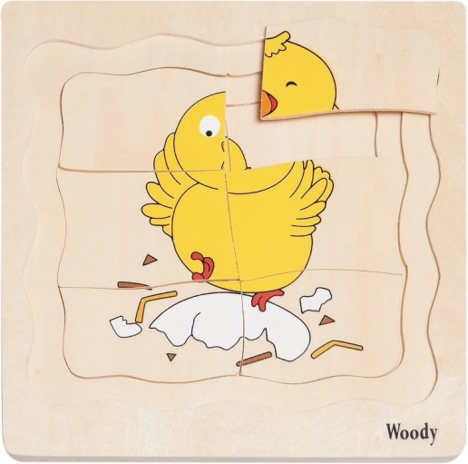 Dette smarte lag-puslespil introducerer på enkel vis børn til livscyklussen hos en høne. De enkelte lag og dele på træpladen indbyder til naturlig opdagelse, sortering og samling. Takket være robust træ og behagelige farver er legetøjet holdbart, sikkert og indbyder til gentagen leg.