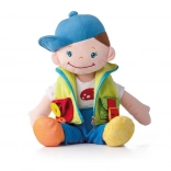 Bløde tekstiler og glade farver understøtter sanseoplevelsen og gør dukken til en favorit legekammerat.