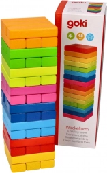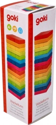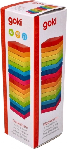 Balancetårnet fra GOKI bringer det klassiske, spændende spil i et moderne regnbuedesign. Hvert niveau består af tre farvede træplader, som du stabler til et stabilt tårn og derefter forsigtigt flytter én klods ad gangen op på toppen. Målet er at bevare balancen så længe som muligt.