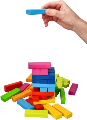 Sjovt færdighedsspil for hele familien: Byg et tårn af farvede træklodser, og fjern derefter forsigtigt klodser, uden at det vælter. Udvikler finmotorik, tålmodighed og koncentration. Kvalitetstrækonstruktion, enkle regler og masser af spænding ved hvert træk.