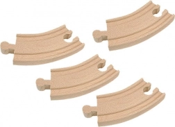 Dette sæt med 4 korte buede skinner er et fantastisk supplement til enhver trætogbane. Med en længde på 10 cm pr. del kan du nemt skabe kompakte buer, forbindelser og nye spor-layouts. Skinnerne forbindes intuitivt og egner sig til små byggere fra 3 år.
