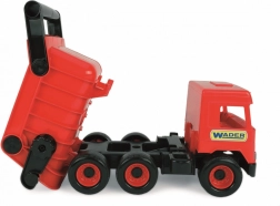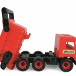 Den røde tipvogn Wader Mellem Lastbil vil glæde ethvert barn, der elsker eventyr. Denne kvalitets plast lastbil har seks hjul, hvilket giver den stabilitet og holdbarhed selv under krævende lege.