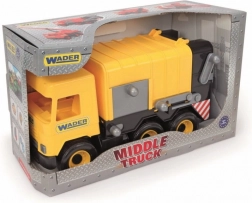 Bilen har en funktionel baglæsser, som gør det nemt at læsse og tømme “affald” fra den medfølgende skraldespand. Den friske gule farve med sorte detaljer og seks hjul sikrer stabilitet og jævn kørsel på forskellige underlag.