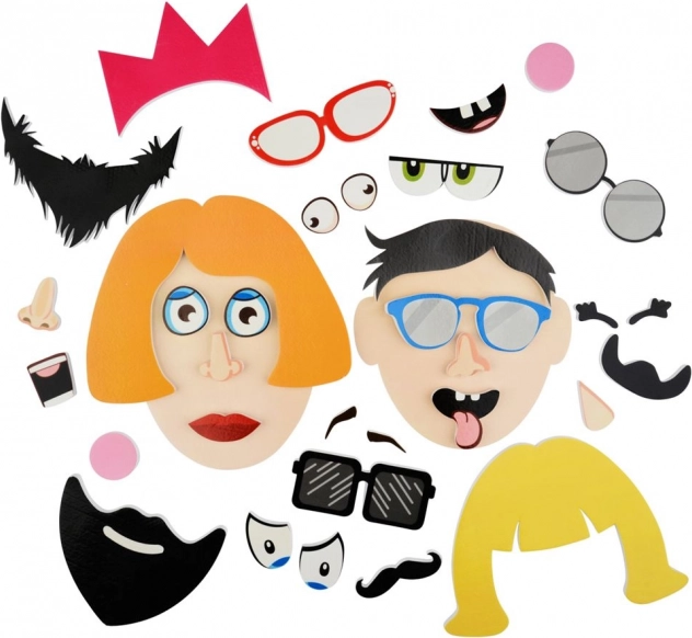 Øjne, næser, munde, hår og sjove accessories – børn kan nemt skabe dusinvis af skøre ansigter og historier direkte i badekarret.