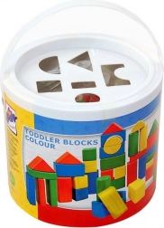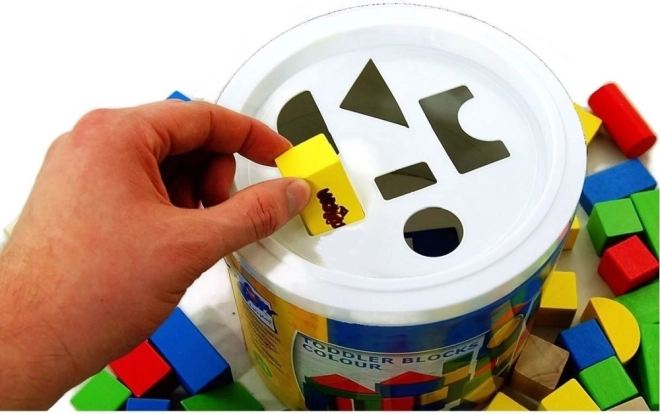 Træklodser i spand med formesorterer er det ideelle legetøj til små børn. Sættet indeholder klodser i forskellige former og farver, som hjælper med at udvikle finmotorik og evnen til at genkende former. Den praktiske spand med låg, der har udskårne former, gør det nemt at opbevare og samtidig sortere klodserne efter form.