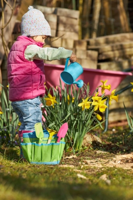 Den praktiske havetaske har rigeligt med plads indvendigt og i lommerne – her opbevarer du let ikke kun skovl, spade, rive og vandkande, men også ekstra udstyr som hat, forklæde eller frø. Takket være den solide udførelse er sættet klar til daglig brug i haven og på legepladsen.