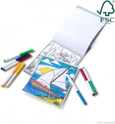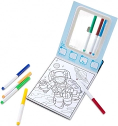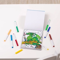 Dette kreative sæt kombinerer en malebogsblok og farvede tuscher i ét. Børn dykker ned i en verden af pirater, drager, astronauter og skovscener og kan farvelægge hver detalje efter deres fantasi. De kompakte mål 15 × 25 cm gør det let for små hænder at håndtere og gør malebogen til en fantastisk rejsepartner.