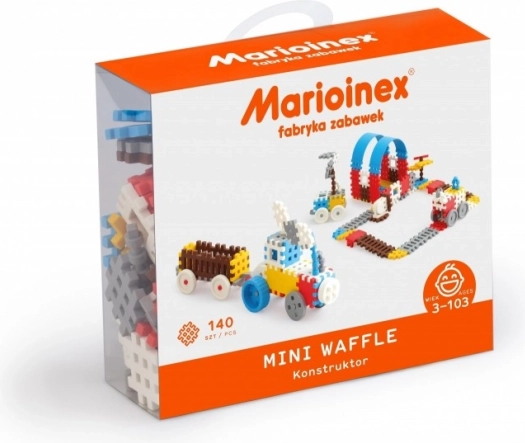 Mini Vaffel Byggesæt tilbyder 140 dele af et innovativt blødt materiale, der minder om gummi. Takket være den mindre størrelse er byggesættet mere mobilt og åbner nye muligheder.