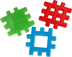 Dette byggesæt med 24 farverige dele på cirka 10,5 × 10,5 cm er ideelt til de første konstruktionslege. De store og let grebbare klodser sættes sikkert sammen, holder formen og kan gentagne gange skilles ad og samles uden at blive beskadiget. Børn får masser af sjov og styrker samtidig hånd-øje-koordination og logisk tænkning.