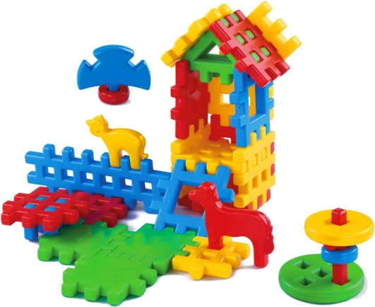 Med dette byggesæt kan børn skabe mange forskellige rumlige konstruktioner efter deres egen fantasi. Klodserne er nemme at samle, og deres markante farver stimulerer fantasi og kreativitet, hvilket gør det muligt for børn at skabe noget helt særligt. Et hus af klodser er grundlaget. Med det kan man trylle en hel verden frem, hvor børn kan fordybe sig i lang tid.