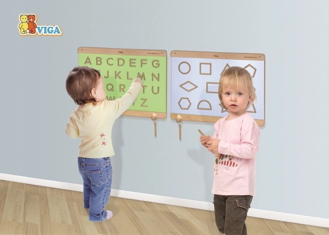 Skab en kreativ væg med et modulært system: et udskifteligt panel med motiv af ornamenter i træbaseret plade. Panelet måler 60 × 40 cm, er egnet til børn fra 3 år og bruges i en ramme, der sælges separat. Én ramme er nok, og du kan skifte mellem op til seks forskellige paneler.