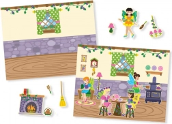 Sættet indeholder farverige illustrationer af feer og magiske landskaber, som inspirerer børn til at skabe deres egne scener og historier.