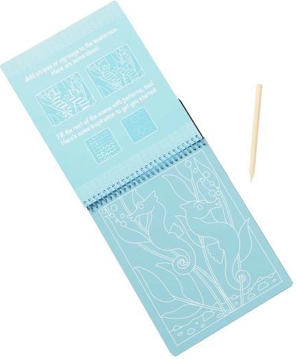 Denne skrabbe-blok med motiver fra havlivet giver børn timevis af kreativ sjov. Det er nok forsigtigt at skrabe det øverste lag med den særlige træstylus, og farverige scener med fisk, skildpadder og søheste dukker gradvist frem. Aktiviteten er intuitiv, motiverende og uden behov for maling eller lim.