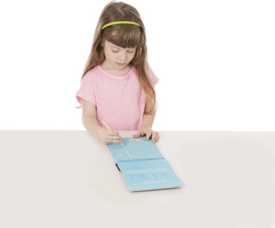 Et særligt lag skjuler livlige farver, som børnene afslører med en træstylus. Ren kreativitet uden maling og pensler.