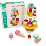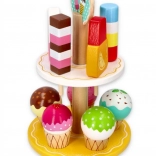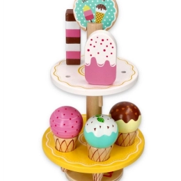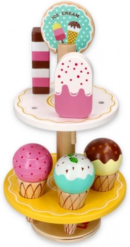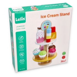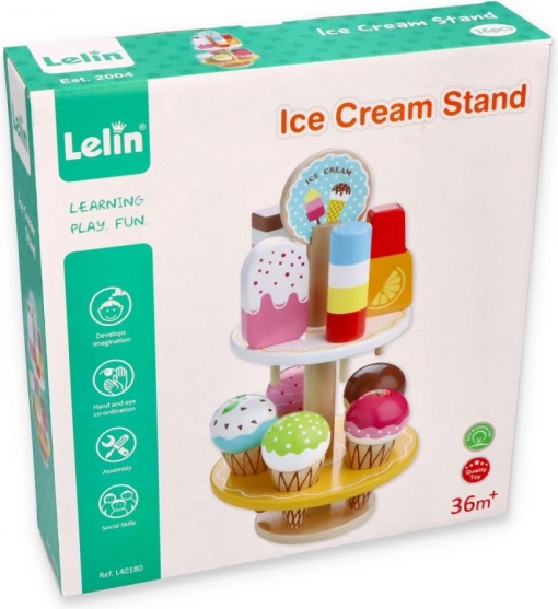 Denne træbod er udstyret med mange farverige is og ispinde, der ligner ægte. Den er designet til at opmuntre til fantasifuld leg hos børn.