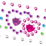 Pakken indeholder forskellige typer pynt: ensfarvede transfers til farvelægning, glitrende tuscher til at fremhæve detaljer og selvklæbende sten til en effektfuld finish. Takket være den enkle påføring lærer børn hurtigt teknikken og udvikler deres kreativitet.
