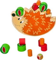 Hvis du vil have dine børn til at nyde timer med sjov og samtidig lære, er træbalanceringsspillet Pindsvin den ideelle løsning. Dette legetøj er designet til at fremme finmotorik og øje-hånd-koordination. Pindsvinet med det muntre orange design giver en stabil base til balancering, og takket være dens venlige udseende tiltrækker det naturligt børn. De farvede trækomponenter, som børnene kan stable og balancere på pindsvinet, sikrer uendelige muligheder for kreativ leg.