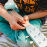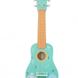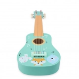 Sød træ-guitar til børn i turkis med dyreillustrationer, der motiverer små musikere til at opdage musikkens verden. Den tilbyder holdbar trækonstruktion, ægte strenge og nemt greb, så den er ideel til de første musikalske forsøg og udvikling af rytmesans og kreativitet.