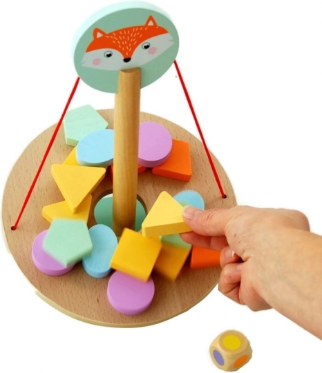 Dette træbalancespil med ræv kombinerer leg og læring på bedste vis. Børn stabler forskellige farvede former på en base med midtersøjle og forsøger at bevare hele tårnets stabilitet. Under legen træner de naturligt finmotorik, hånd–øje-koordination og logisk tænkning.