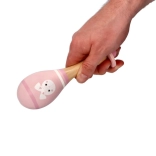 Denne søde lyserøde træmaracas med kanin er et fantastisk første musikinstrument til de mindste. Den blide raslelyd understøtter udvikling af hørelse, rytme og naturlig nysgerrighed, mens form og størrelse er perfekt tilpasset små børnehænder. Naturligt træ, glat overflade og omhyggeligt afrundede kanter sikrer sikker leg hver dag.