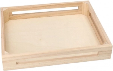 Alle dele i sættet er pænt organiseret i en træbakke med håndtag – nem at bære, holder orden og giver sikker opbevaring derhjemme og i børnehaven.