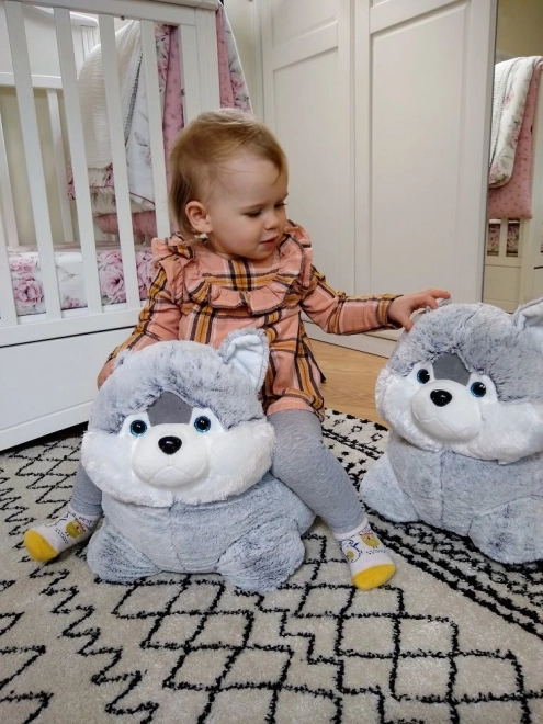 Denne søde plyspude husky er den ideelle makker til børn i alle aldre. Takket være det bløde og behagelige materiale er den et godt valg til at kramme eller til komfortabel siddestøtte. Med sit universelle design og de charmerende blå øjne fanger den straks opmærksomheden.