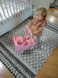 Julia er ikke kun et legetøj, men også en smuk dekoration, der pynter på børneværelset. Hun er designet til at være helt sikker for børn og er derfor certificeret i henhold til CE-standarden. For nem vedligeholdelse kan hun tørres af med en fugtig klud og lufttørres.