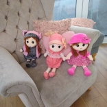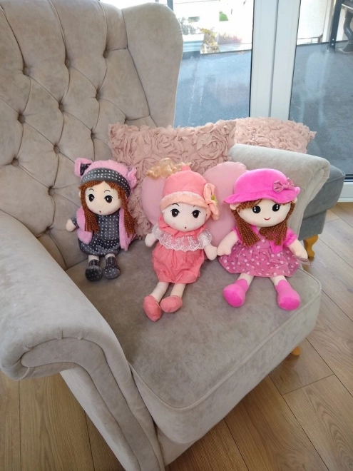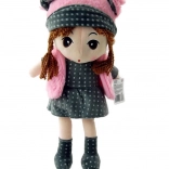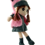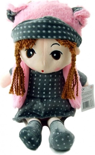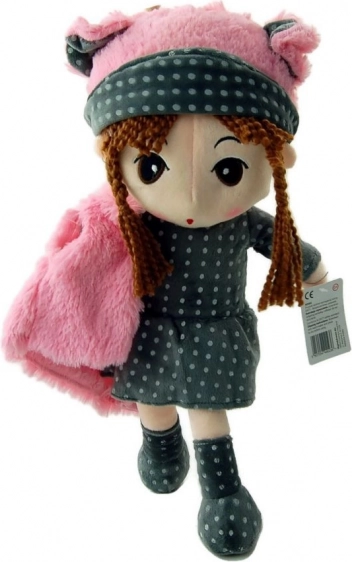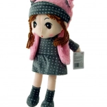 Mød Dukke Pola, et vidunderligt plyslegetøj med brune fletninger, der praler af en gråprikket kjole og lyserøde tilbehør. Dette bløde legetøj er ideelt som ledsager til både daglige lege og rolige nætter.