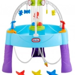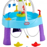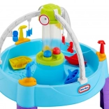 Bordet er udstyret med forskellige elementer, såsom roterende mål og en vandcylinder, som opmuntrer børn til dynamisk leg og udvikling af deres færdigheder.
