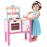 Realistiske elementer som åbne-lukke døre, drejelige betjeningsknapper og visere på uret stimulerer fantasi og finmotorik. Arbejdshøjde på 50 cm er ideel for små kokke, mens nem montering efter den medfølgende plan glæder forældre.