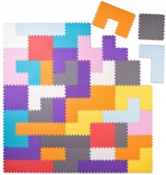 Forskelligt formede brikker uden aftagelige dele samles som TETRIS og gør det muligt at skabe en legeflade på op til 120 × 120 cm. De livlige farver indbyder til leg og læring.