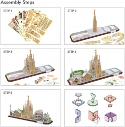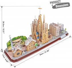 Dette 3D‑puslespil bringer Barcelonas atmosfære hjem til dig, inklusive den berømte SAGRADA FAMILIA og andre arkitektoniske perler. Delene er forududskårne, nemme at trykke ud af arket og samles problemfrit efter vejledningen – uden brug af lim eller saks. Den færdige model tager sig flot ud som stilfuldt indslag i stue, kontor eller børneværelse.