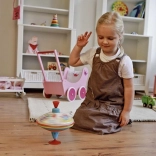 Du betjener snurretoppen nemt ved blot at trykke på den øverste stang, hvorefter den begynder at rotere og udsender en karakteristisk, behagelig lyd. Børn vil elske dette legetøj ikke kun for dets magiske udseende, men også for lyden, det laver, når det snurrer. Snurretoppen er ideel til børn fra 1 år, og den træner finmotorik og koordination.