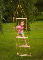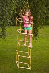 Fremstillet af solide træpinde og slidstærke reb, som sikrer sikkerhed ved hver brug.