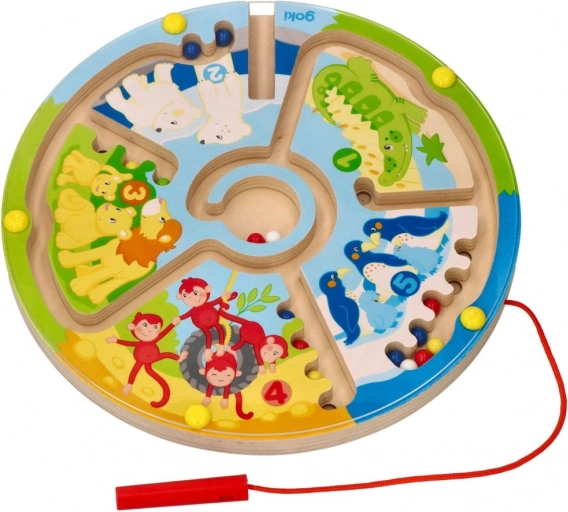 Oplev læring gennem leg. Børn fører de farvede kugler gennem labyrintens snoede stier med magnetpennen på to måder: klassisk styring af kuglerne mod målet eller sortering efter farver og tal. Dyr fra Zoo og tallene 1–5 fanger de små spilleres opmærksomhed og motiverer dem naturligt til at tælle og koncentrere sig.