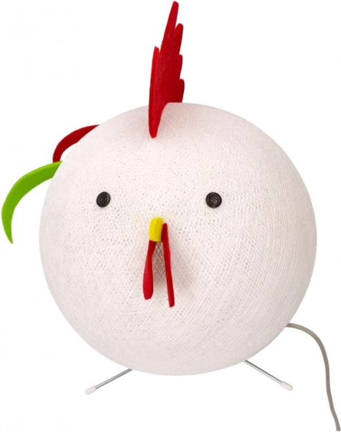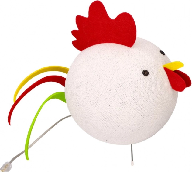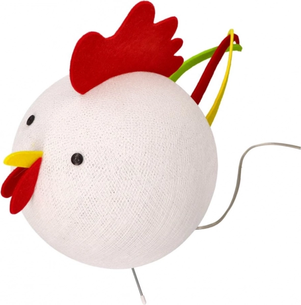 Det sfæriske korpus, den farverige kam og næbbet skaber et muntert udtryk, der giver indretningen personlig charme og behageligt stemningslys.