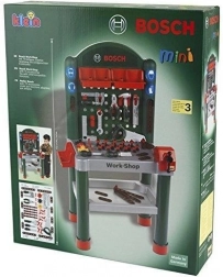 Dette robuste BOSCH-arbejdsbord er en tro kopi af et rigtigt værksted, designet sikkert til børn. Den højkvalitets plast sikrer holdbarhed og lang levetid, mens det rige udvalg af værktøj indbyder til leg og læring. Takket være gennemtænkt opbevaring på standeren og i rummene lærer børn nemt arbejdsorganisering.
