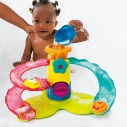 Forvandl et almindeligt bad til et eventyr med vores farverige plastik akvapark! Dette legetøj byder på to spiralrutsjebaner forbundet til et centralt tårn med en blå blomsterknap og en blæksprutte på toppen, hvilket fremmer sanse- og fantasifuld leg. Børn vil nyde timers sjov i badeværelset med dette legetøj, der fremmer bevægelse og farvestimulering. Inklusiv to dyrefigurer på pontoner og en hvalformet skovl til vandpåfyldning.