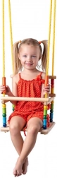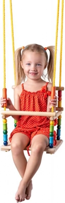 Denne trægyngestol giver børn glæde ved at gynge og forældre tryghed takket være kvalitetsforarbejdning og CE-certificering. Sædet måler 30 × 30 cm, er stabilt og behageligt at sidde på, mens de justerbare tove gør det let at tilpasse længden til forskellige omgivelser.