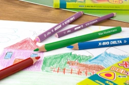 Sæt af store trekantede farveblyanter X-Big Delta i 6 smukke farver er ideelle til små kunstnere. Ergonomisk form for bedre greb og kontrol under tegning.