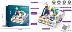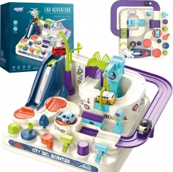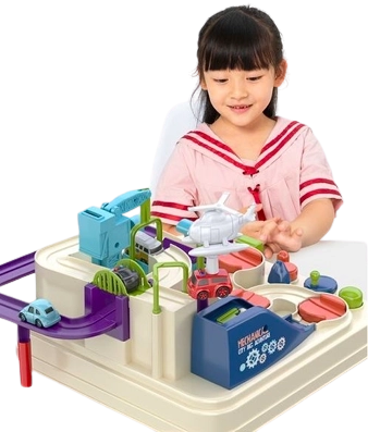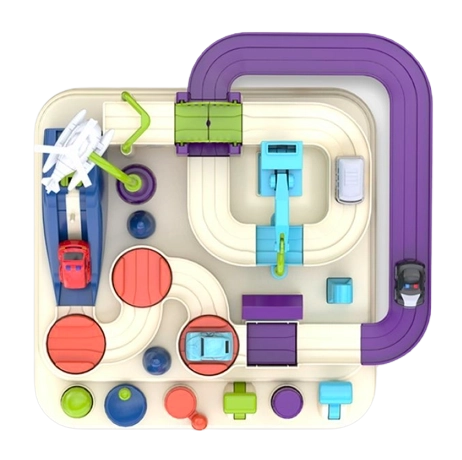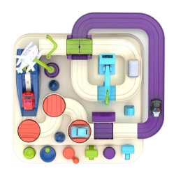 Betjeningsknapper og drejehjul giver børn kontrol over løfteplatforme, bevægelige platforme og bro. Legen udvikler planlægning og beslutningstagning – de små racerkørere skal tænke over, hvordan de bedst kører ruten og overvinder udfordringerne.