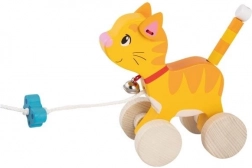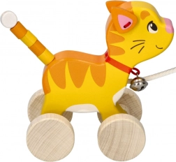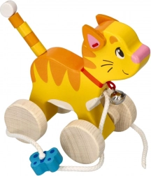 Denne søde trækkat af træ er det ideelle legetøj til at støtte den motoriske udvikling og balance hos små børn. Den er udstyret med en klokke, der forsigtigt ringer under bevægelse, hvilket tilføjer legetøjets attraktivitet.