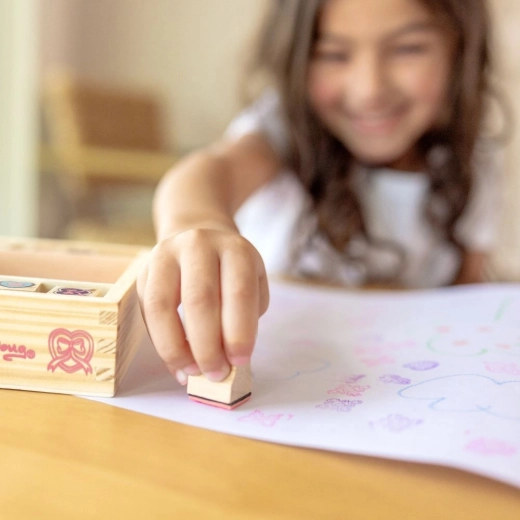 Store, brugervenlige træstempler er ideelle til at skabe de mest forskellige kreationer. Med dem kan du dekorere hæfter, albummer, kort og postkort. De er det perfekte hjælpemiddel til enhver kreativ entusiast og stor underholdning for børn fra 4 år.