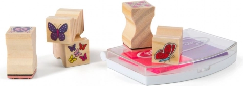 Stempler Sommerfugle og Hjerter: Alle dele er opbevaret i en elegant trækasse, som gør det let at rydde op efter kreativ leg. Disse stempler giver uendelige muligheder for forskellige kreative projekter.